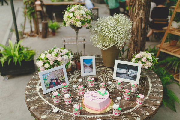 Kỷ niệm ngày cưới không thể thiếu được: Hoa tươi, bánh kem, những cây nến tỏa sáng lung linh, ánh đèn lãng mạn cùng những khung hình ngọt ngào của cặp đôi.